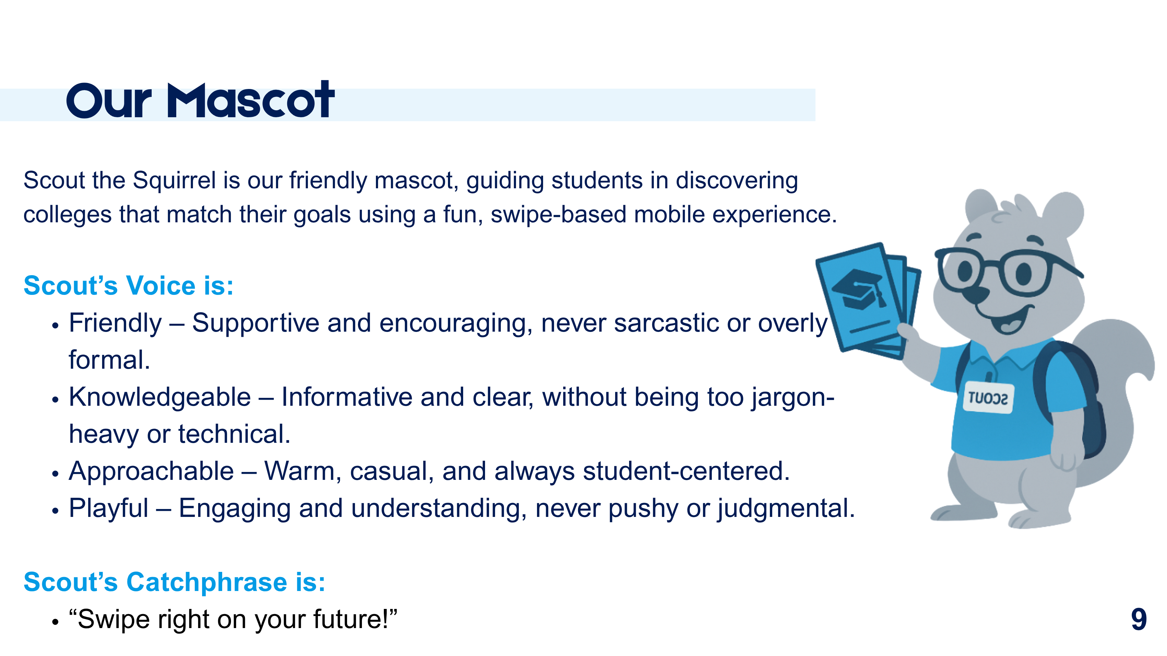 Tone: Friendly, supportive, and informative, reinforcing trust while remaining approachable for high school and college-aged users.