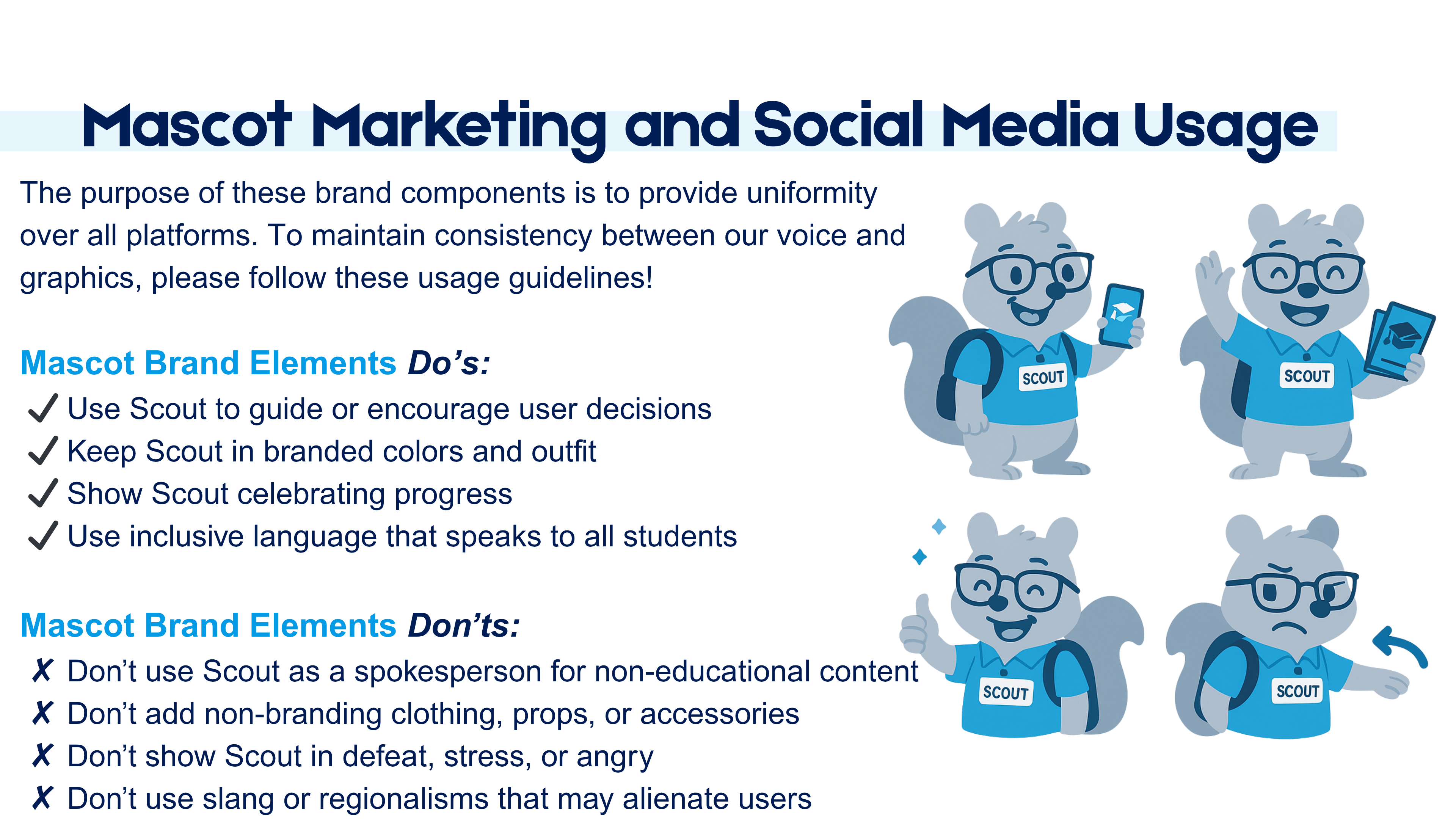 Included layout, tone, and social media usage guidance to unify brand messaging